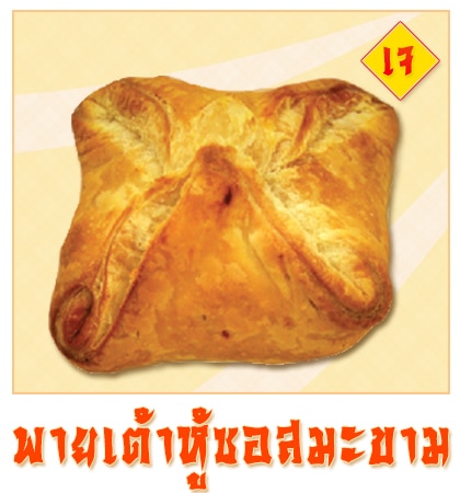 ขนมเจกลุ่ม B : พายเต้าหู้เม็ดมะม่วงหิมพานต์เจ, พายเต้าหู้กะเพราเจ, พายเต้าหู้ซอสมะขามเจ, พายแห้วเจ, พายกะหรี่ผักเจ